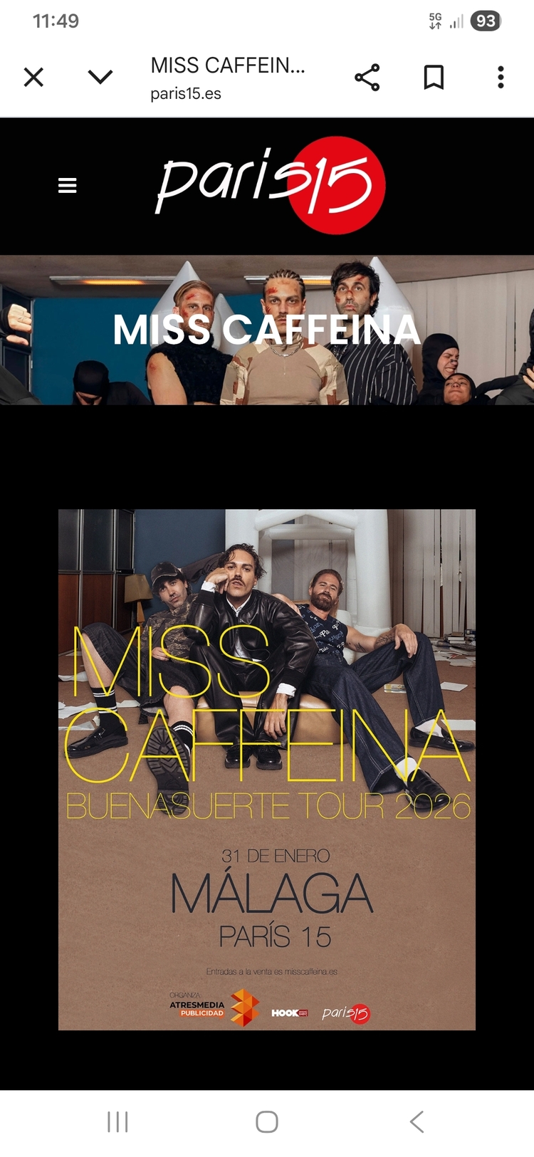 El proximo sabado 31 de enero a las 21 empieza su gira el grupo miss caffeina, yo voy a ir en coche y venir en el dia a verlo, alguien se anima. Sala Paris, la entrada la saco la proxima semana